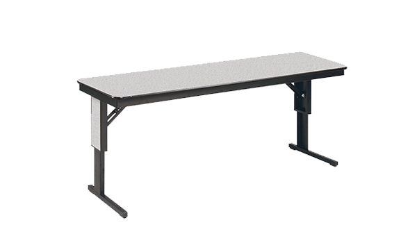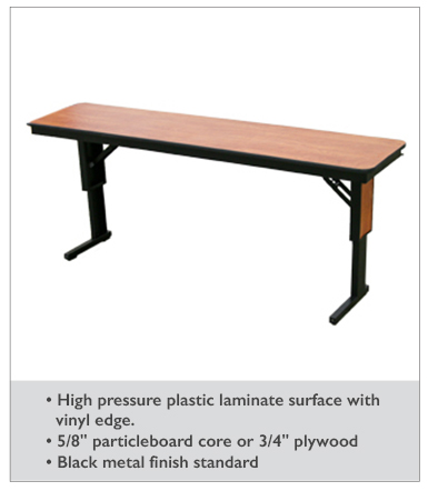 They feature cantilever-style legs and a spring bolt locking brace, which holds table legs open or closed.