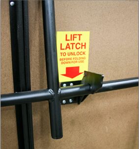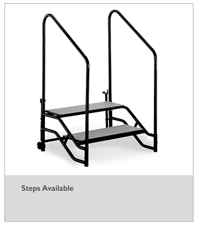 Opening the stage deck automatically lifts casters from the floor to prevent movement when the stage is in use. Integral drop-in couplings allow stages to be joined together.