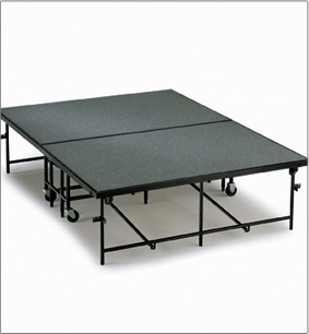 One person can roll Midwest Folding's mobile stages easily from storage to the event location.