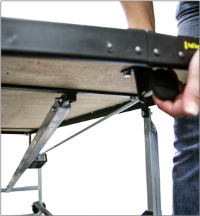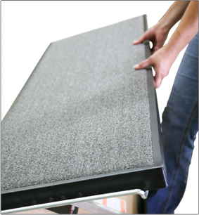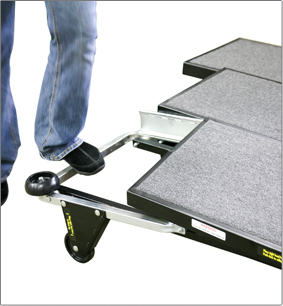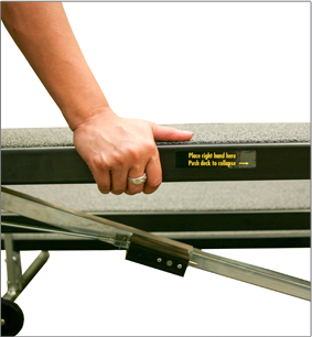The TransFold standing choral riser is ready to go wherever your choir performs. Built-in wheels make it easy to roll the TransFold unit from the classroom to the auditorium or up stairways and on to a bus or van. Upon arrival at the performance venue, your TransFold risers set up in seconds, so that they will be ready when you are. Midwest's exclusive, gas-spring assisted design allows the unit to open with moderate foot pressure, taking the strain out of set up. This also ensures a safe, controlled motion when folding the unit for transportation and storage.